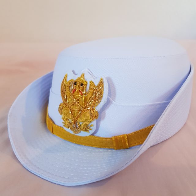 ข้าราชการชาย ให้ใช้หมวกทรงหม้อตาลสีขาว บังหน้าทำด้วยหนังหรือวัตถุเทียมหนังสีดำ สายรัดคางสีทองกว้าง 1 เซนติเมตรีดุมโลหะสีทองตราครุฑพ่าห์ขนาดเล็กติดที่ข้างหมวกข้างละ 1 ดุม ผ้าพันหมวกสีขาว หน้าหมวกติดตราครุฑพ่าห์ปักดิ้นสีทองสูง 5 เซนติเมตร บนหมอนสักหลาดสีขาว